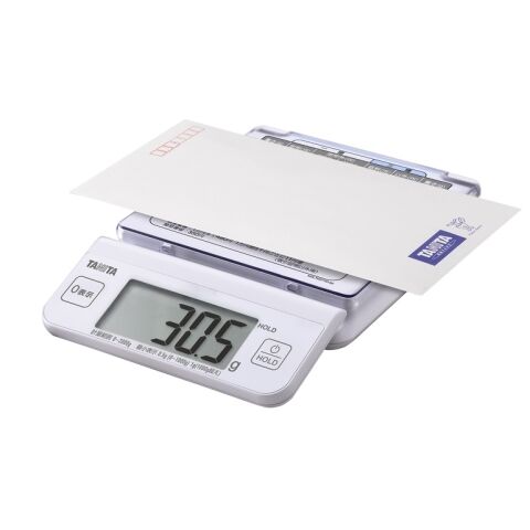 郵便物などを計量する際、表示部が隠れてしまっても、計量物をおろした後に約20秒間重さを表示する「HOLDモード」付き。