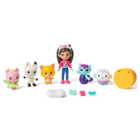 『ギャビーのドールハウス ザ・ムービー』に登場する新キャラクター”チャムズリー”を含むギャビー、パンディ、ケーキー、キティ・フェアリー、マーキャットのフィギュア6体と小物入りのネコちゃんボックスが付いたセット。