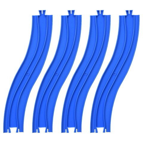 直線レール1本と同じ長さで、複線幅間をゆるやかにカーブし走行することができるよ!