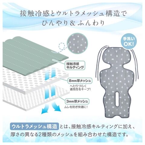 ・接触冷感キルティングに加え、厚さの異なる2種類(8mm厚さ&3mm厚さ)のメッシュを組み合わせた 「ウルトラメッシュ構造」で通気性をキープ。