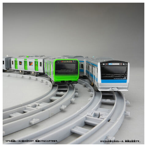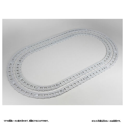 4本使用すると半円がつくれ、リアル曲線レールと合わせれば、複線にすることができます。