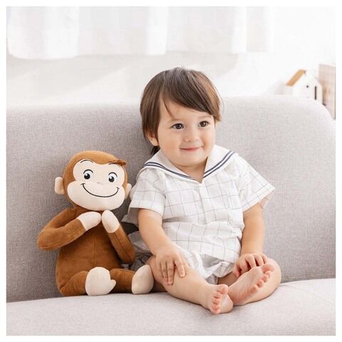 ジョージのおしゃべり、アニメのテーマ曲など豊富なメロディが入った知育ぬいぐるみです。
