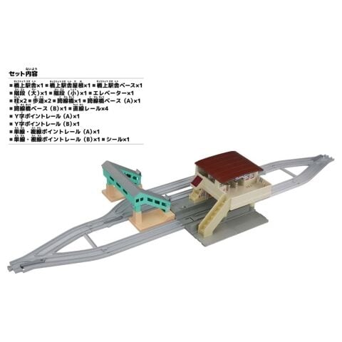 橋上駅舎(1) 橋上駅舎屋根(1) 橋上駅舎ベース(1) 階段(大)(1) 階段(小)(1) エレベータ―(1) 柱(2) 歩道(2) 跨線橋(1) 跨線橋ベース(A)(1) 跨線橋ベース(B)(1) 直線レール(4) Y字ポイントレール(A)(1) Y字ポイントレール(B)(1) 単線・複線ポイントレール(A)(1) 単線・複線ポイントレール(B)(1) シール(1)