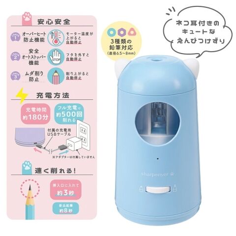 ◆ネコ耳付きのキュートな充電式えんぴつけずり