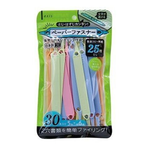 ◆2穴書類を簡単ファイリング。◆コピー用紙25枚まで綴じられます。◆見出しスペースに文字が書けます。◆30本入り、5色各6本。◆保管に便利なチャック袋入り。◆グリーン購入法適合商品。