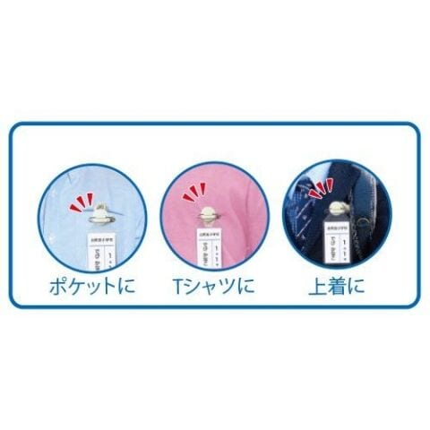 パチッとはさむだけの名札留め。タテでもヨコでも取りつけられる!