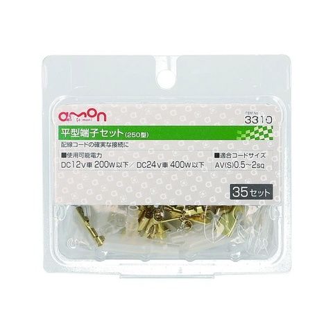エーモン工業 平型端子セット 適合コードサイズ:AV(S)0.5~2sq 端子規格:250型(入数:35セット) amon 3310 【返品種別A】