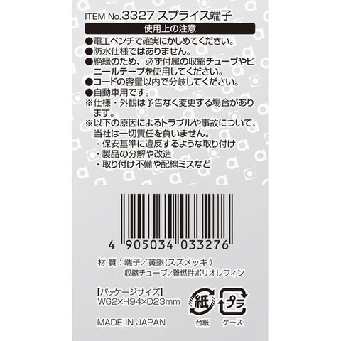 エーモン工業 スプライス端子 適合コードサイズ(かしめる2本の合計):AV(S)0.8~2sq(入数:15個) amon 3327 【返品種別A】