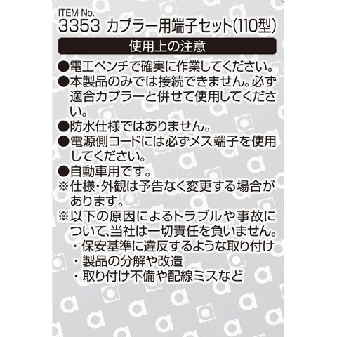 エーモン工業 カプラー用端子セット 110型 適合コードサイズ:AV(S)0.5~1.25sq(入数:8セット) amon 3353 【返品種別A】