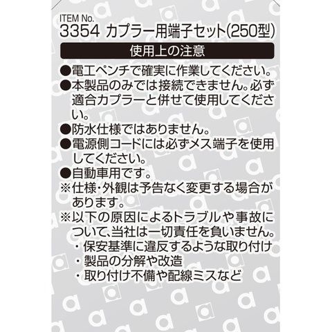 エーモン工業 カプラー用端子セット 250型 適合コードサイズ:AV(S)0.5~2sq(入数:8セット) amon 3354 【返品種別A】
