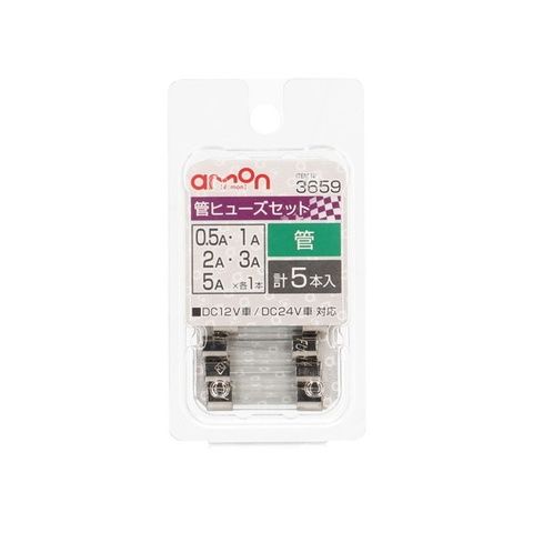 エーモン工業 管ヒューズセット 0.5/1/2/3/5A 約φ6.4 × 長さ約30mm amon 3659 【返品種別A】
