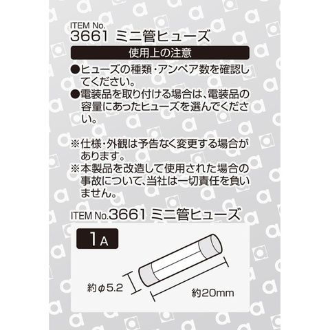 エーモン工業 ミニ管ヒューズ 1A 約φ5.2×長さ約20mm(1A×5本入) amon 3661 【返品種別A】のレビュー