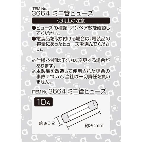 エーモン工業 ミニ管ヒューズ 10A 約φ5.2×長さ約20mm(10A×5本入) amon 3664 【返品種別A】