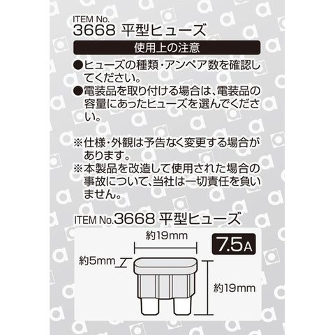 エーモン工業 平型ヒューズ 7.5A 約19×19×5mm 7.5A×5個入 amon 3668 【返品種別A】