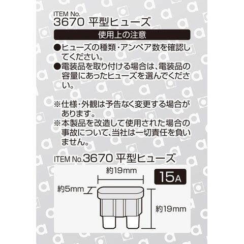 エーモン工業 平型ヒューズ 15A 約19×19×5mm 15A×5個入 amon 3670 【返品種別A】