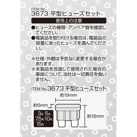 - 製品名::平型ヒューズセット 3/5/7.5/10/15A