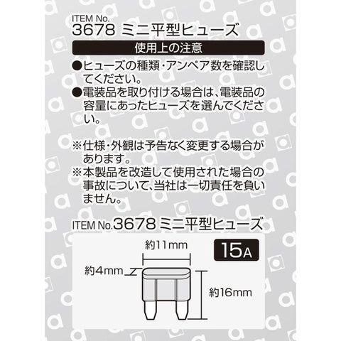 エーモン工業 ミニ平型ヒューズ 15A 約 11×16×4mm 15A×5個入 amon 3678 【返品種別A】のレビュー