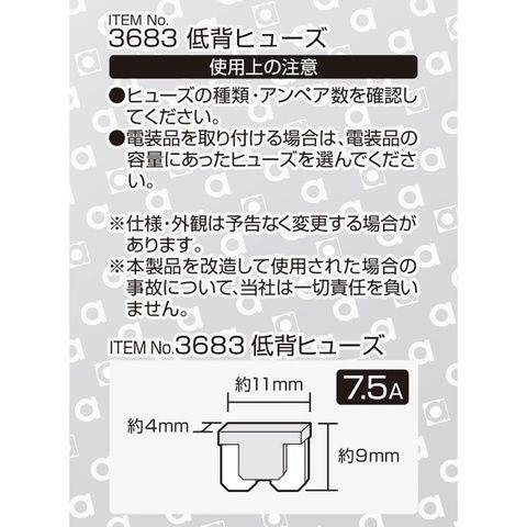 エーモン工業 低背ヒューズ 7.5A 約11×9×4mm(7.5A×5個入) amon 3683 【返品種別A】