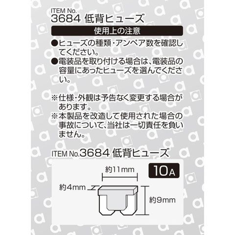 エーモン工業 低背ヒューズ 10A 約11×9×4mm(10A×5個入) amon 3684 【返品種別A】