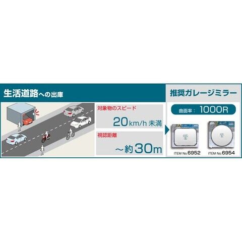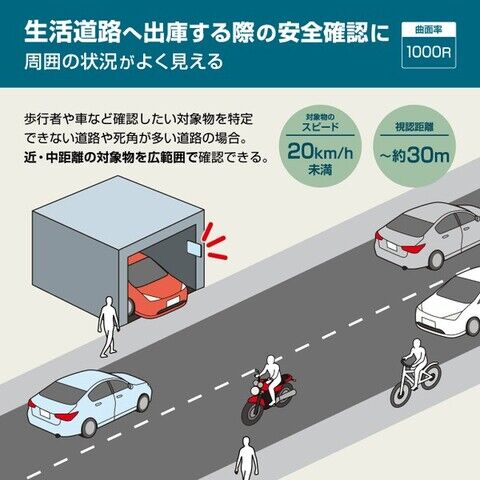 【仕様】・曲面率:1000R・ミラーサイズ:約280×210mm・視認距離: 約30m