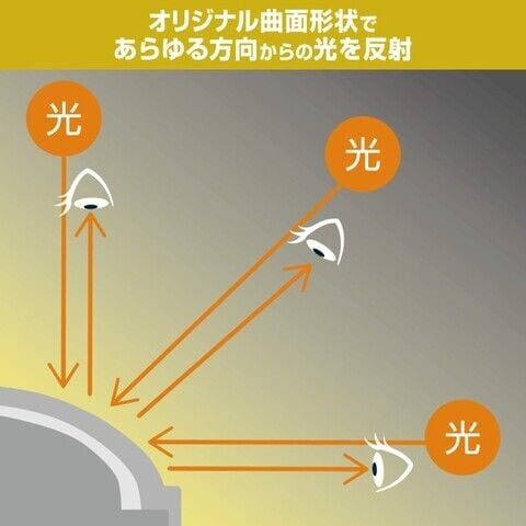 ◆オリジナル曲面形状であらゆる方向からの光を反射