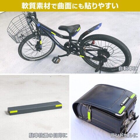 昼は蛍光、夜は反射し昼夜問わず高い視認性軟質素材で曲面にもよく馴染む再帰性反射蛍光