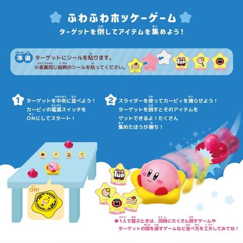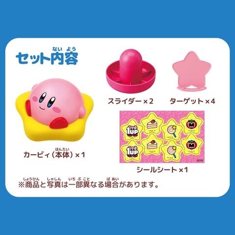 ワープスターに乗っているカービィを滑らせ、アイテムターゲットを倒す商品です。
