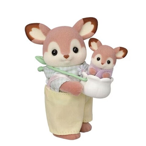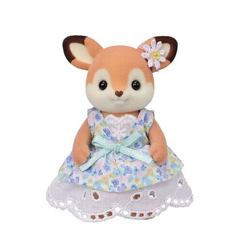 お花モチーフのお洋服がお似合いの大きな耳がかわいいシカファミリーです。