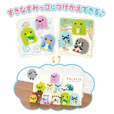すみっコぐらしのキャラクターがたくさんつくれる、フリップビーズトレイつきのオールインワンセットです。