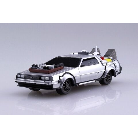 不朽の名作「バック・トゥ・ザ・フューチャー」に登場するタイムマシンのデロリアンがプルバック走行のプラモデルで登場です。