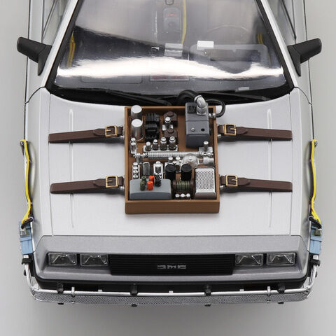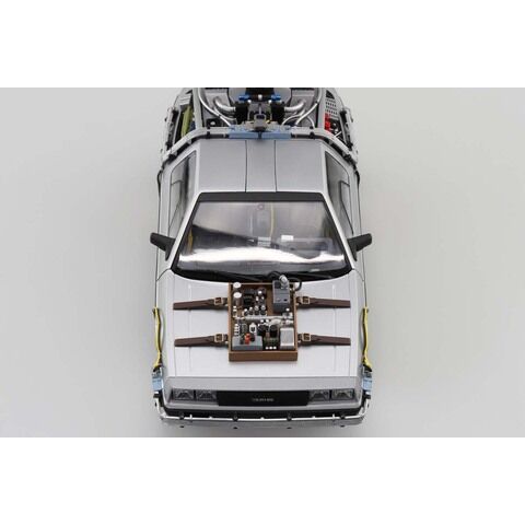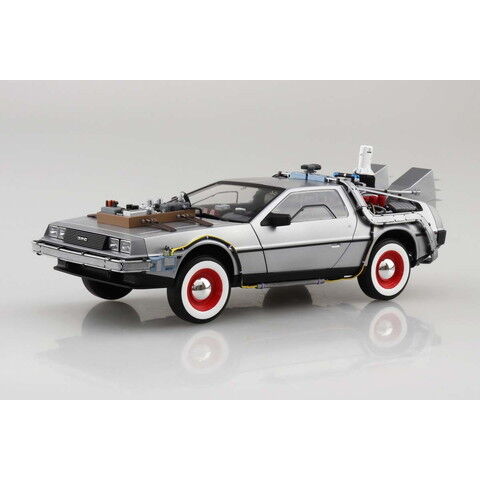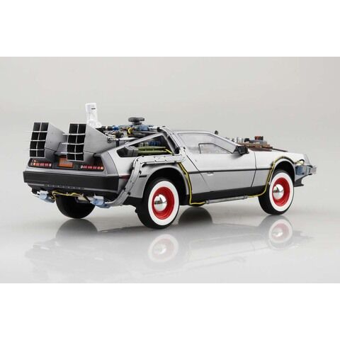金型大幅追加 1955年当時のパーツで作られた「ボンネット・ボックス」を装着したタイムマシンを精密に再現 タイヤはホワイトリボンタイヤを装着 1885年の荒れた地面でも走行できるように上げられた車高を再現 ガルウイングドアは完成後も開閉可能 サイズ:全長約184mm