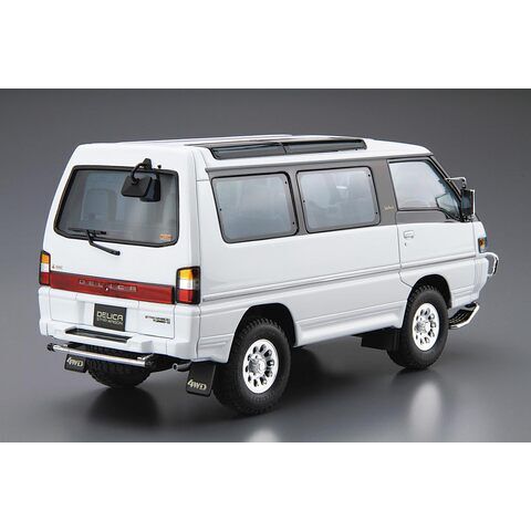 P35W型デリカスターワゴンの中でも最上級モデルのスーパーエクシードを再現 ノーマルのカタログ仕様を基本に、当時大流行したオプションパーツやアルミホイール付属 窓枠マスキングシール付属