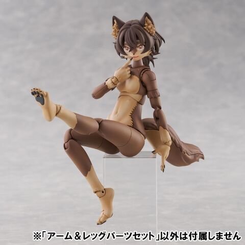 アーム&レッグパーツセットは、新造形の中ケモアーム、中ケモ用レッグ、高ケモ用レッグがセットになっており、ベースキットの腕部と脚部をお好みで交換することで、従来とは違った雰囲気のケモノが再現可能です。