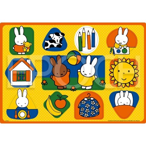 ミッフィーのたのしい一日を描いた絵柄です。かたち合わせを楽しめます。