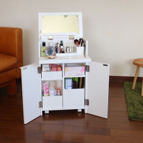 - 付属品:可動棚×2枚、トレイ 大×1・中×1・小×4・ミニ×3、隠しキャスター付き