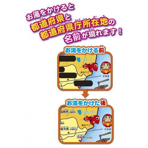 お湯をつけると、地名が出てきます。(温度によって色変わりするインクは約32℃以上で色が消え始め、約25℃以下で黒い色が着色します)