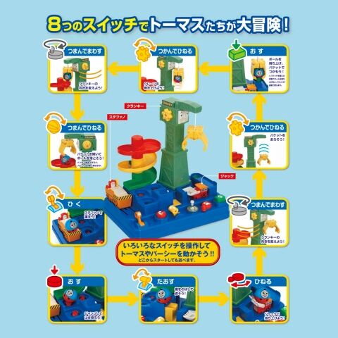 スイッチやレバーを指先で操作してボール状のトーマスたちがコースを上手に転がるように操作しよう!