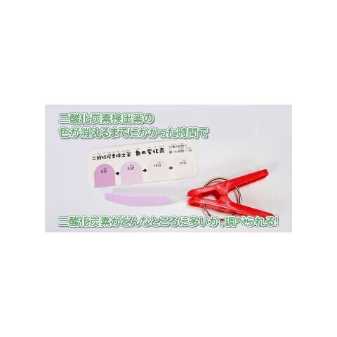 付属の検出薬を使って、二酸化炭素はどこから発生して、どんな場所に多いか調べてみましょう。