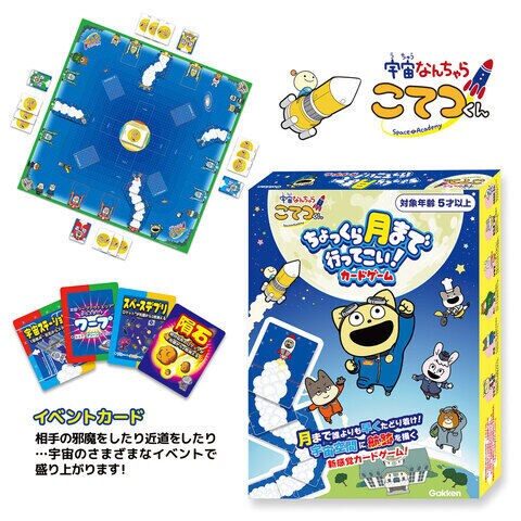 人気アニメ『宇宙なんちゃらこてつくん』とのコラボ企画、宇宙空間でロケットを飛ばす新感覚カードゲームです。