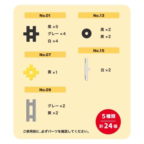 グレーや黄色のパーツが入っているので、統一感ある色のブロックを使って様々な作品を作れます。