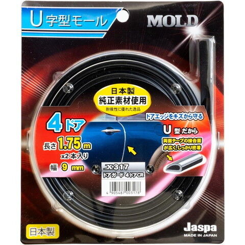 向島自動車用品製作所 JASPA U字型モール ドアガード4ドア(長さ1.75m×幅9mm)2本入 クローム Uジガタモ-ルドアガ-ド 【返品種別A】