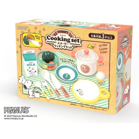 人気キャラクターのスヌーピーや仲間たちがデザインされたおままごとセットです。