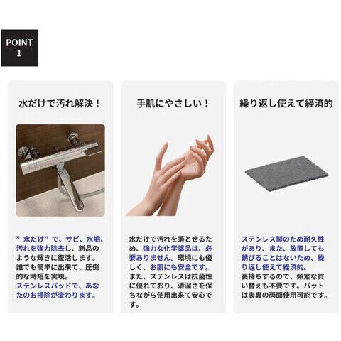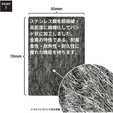 特殊ステンレスパッド耐腐食性・耐熱性・耐久性・抗菌性に優れている。