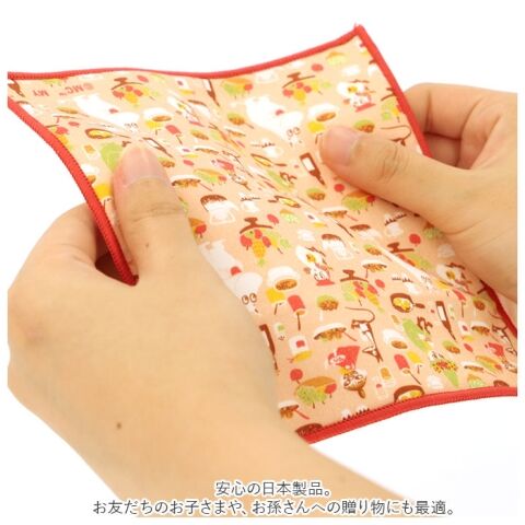 駆けっこの後に汗をかいたり、転んで膝小僧をすりむいて泣き出したり・・・。活発なキッズの汗も涙もサッと拭き取る、小さくて優しいハンカチ。
