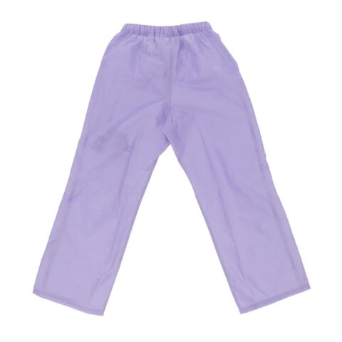 ◆ウエストゴム式のレインパンツは脱ぎ着がラクに出来て、通学用ズボンの上から履いてもつっぱらない余裕のあるつくり。