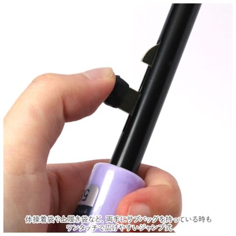 ◆体操着袋や上履き袋など、両手にサブバッグを持っている時もワンタッチで広げやすいジャンプ式。