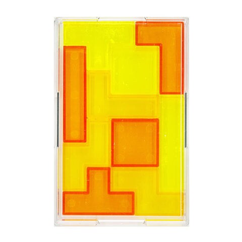 3色のグラデーションで構成された美しい透明ピースをケースにはめるパズルです。