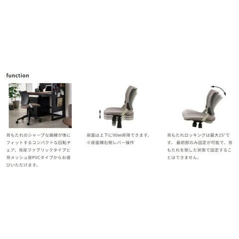 背もたれのシャープな曲線が身体にフィットするコンパクトな回転チェア