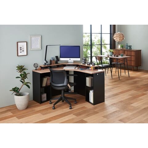 背もたれのシャープな曲線が身体にフィットするコンパクトな回転チェア