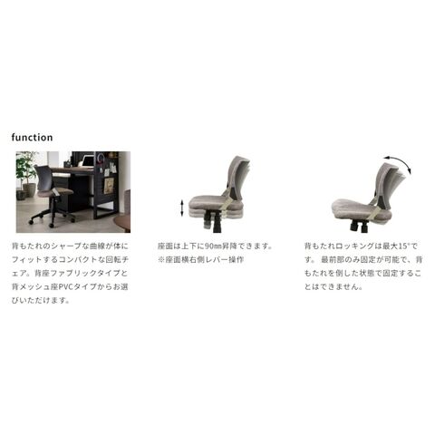 ◆ロッキング機能:背もたれが後ろに倒れるロッキング機能搭載。リフレッシュしたいときに。